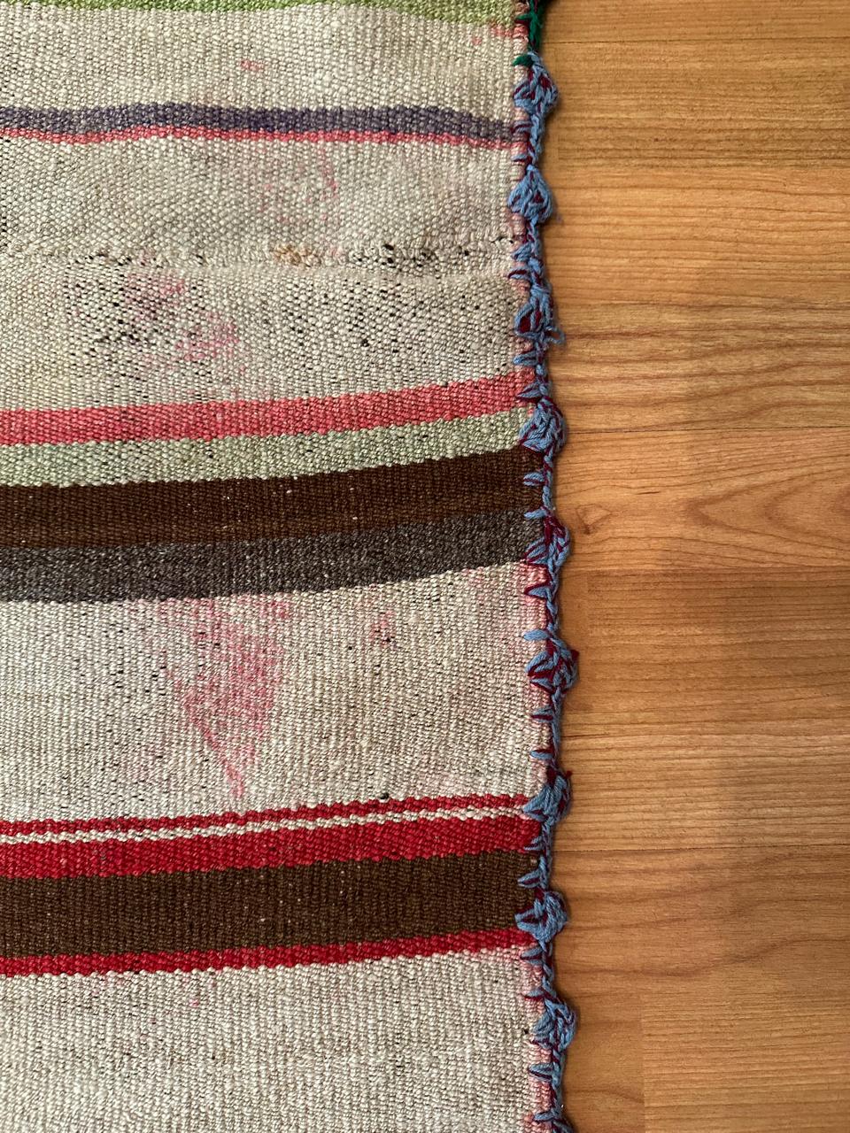 TAPETE DE TEAR — PERUANO LEGÍTIMO – TRAZIDO NA MALA – MANCHAS PRÓPRIAS DA PEÇA – LISTRAS FINAS – D003.34