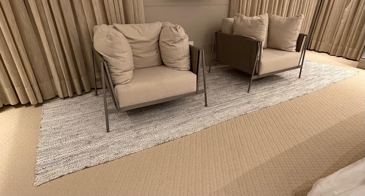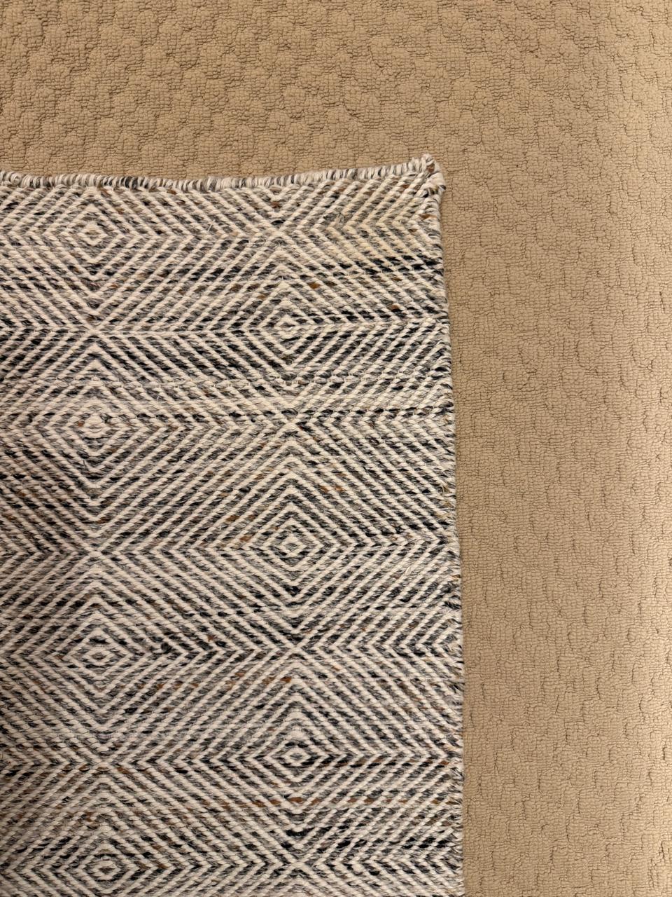 TAPETE LONGO – LÃ – FIBRA NATURAL – TONS CLAROS COM MESCLA DELICADA EM PRETO, MARROM E CINZA — J045.305