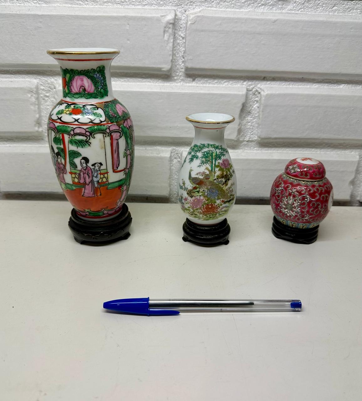 TRIO VASOS PEQUENOS DE PORCELANA CHINESA – PINTADOS À MÃO