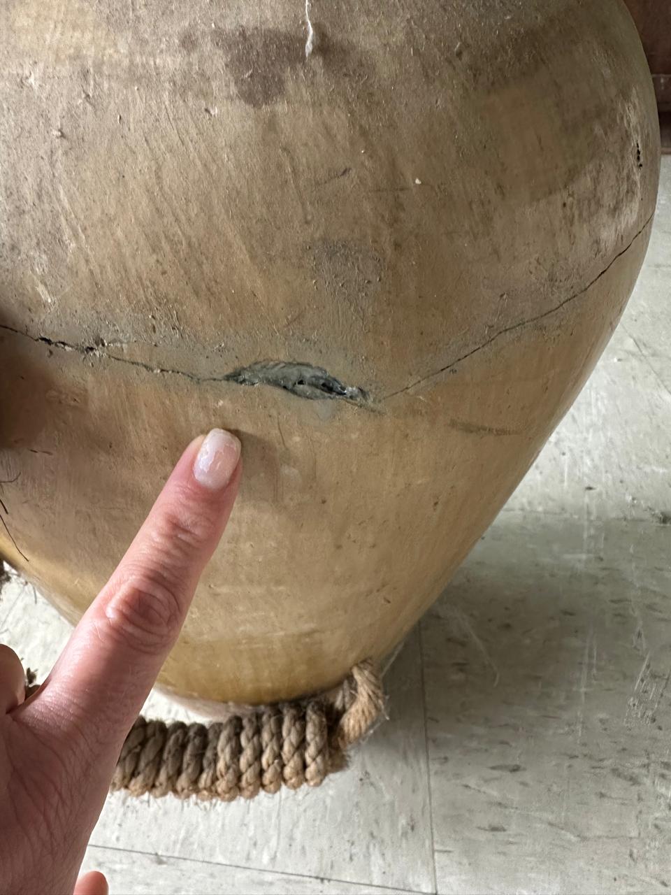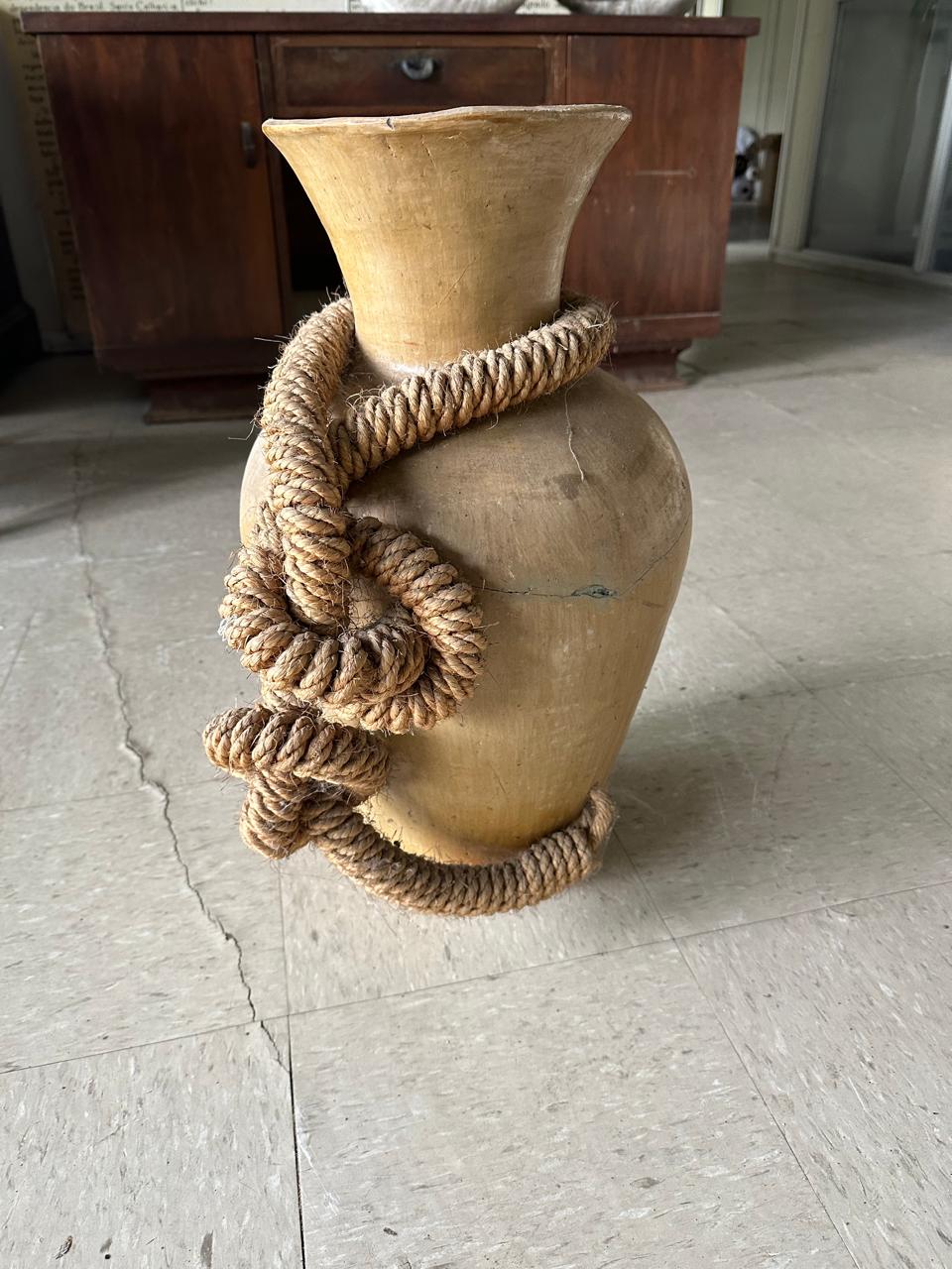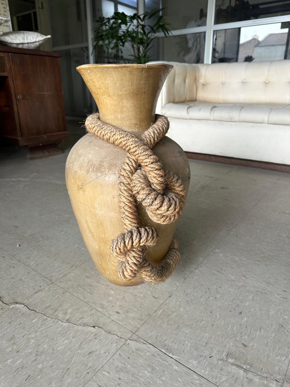 VASO CERÂMICA – DETALHE CORDA SISAL – RACHADURA BEM NO CENTRO – MESMO ASSIM VALE PARA AS PLANTAS SECAS – PEÇA BEM INTERESSANTE NA DECORAÇÃO — L085.05