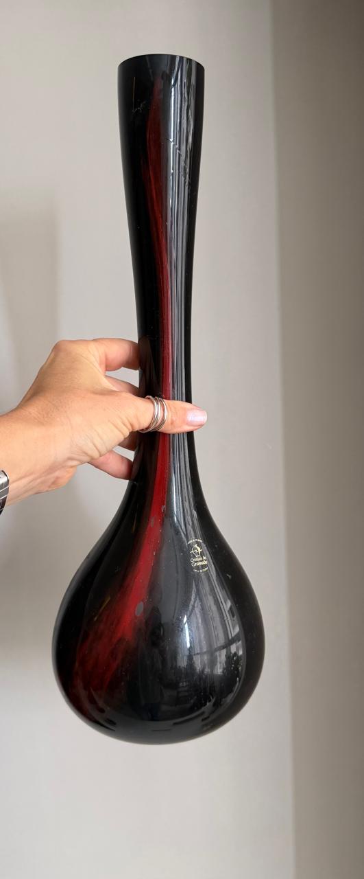 VASO DECORATIVO – CRISTAL DE GRAMADO – LINDA PEÇA – SOLITÁRIO – ALTO – TOM MARROM AVERMELHADO — A122.04